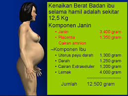 Kenaikan total berat badan selama kehamilan, normalnya berkisar antara 12-15 kg, sedangkan Memasuki trimester 2 janin tumbuh pesat dengan pertumbuhan kurang lebih 10 gr per hari ( minggu ke 16 sekitar 90 gr, minggu ke 20 sekitar 256 gr, minggu ke 24 sekitar 680 gr, minggu ke 27 sekitar 900 gr).
